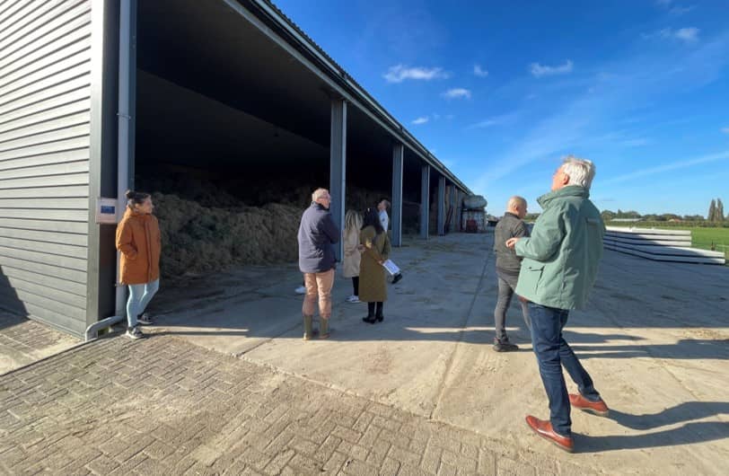 Om een goed beeld te hebben van wat er speelt in de agrarische sector, zijn een aantal collega’s van de Regieorganisatie GLB op werkbezoek geweest op het bedrijf van Aleid Blitterswijk in Werkhoven. Aleid werkt op zijn bedrijf aan de omslag naar een duurzame melkveehouderij met vers gras en hooi, in plaats van kuilgras en veel krachtvoer.